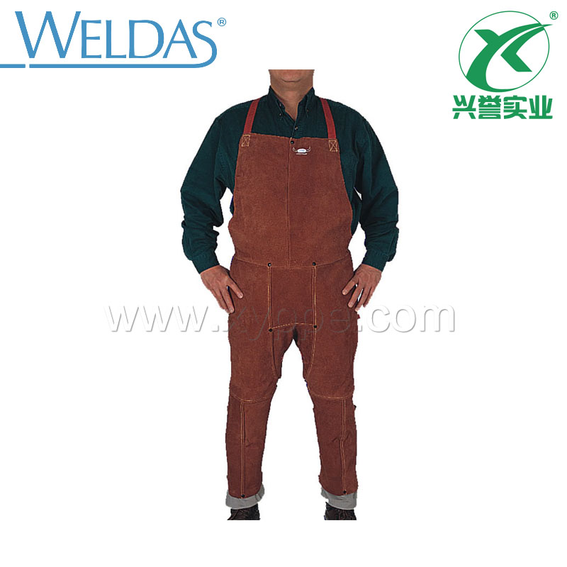 由耐用、柔韧的牛二层咖啡色芯皮制成,具耐磨、隔热和抗火性能。此款设计新颖,可全方位的保护操作者的双腿,移动灵活,轻便,广泛适用在炎热气温或室内焊接。