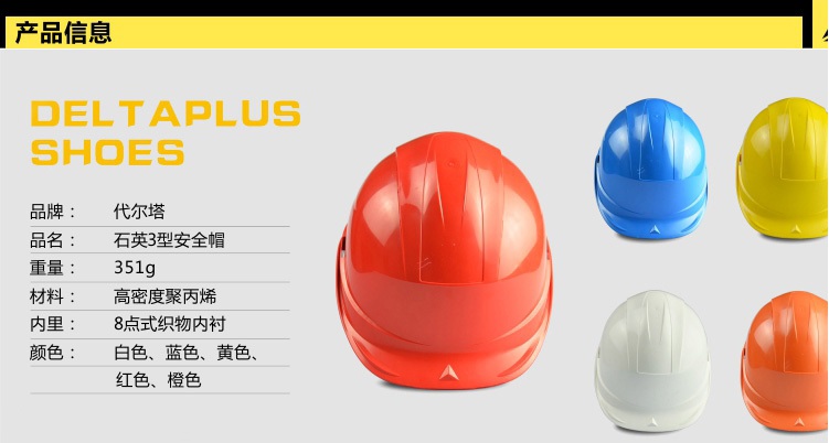 产品名称:代尔塔 102008石英3型抗紫外线绝缘安全帽