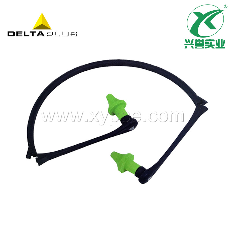 1.可重复使用聚氨酯(PU)耳塞,由可折叠聚丙烯材质拱形头箍连接,悬于下颚;可折叠,便于携带;
