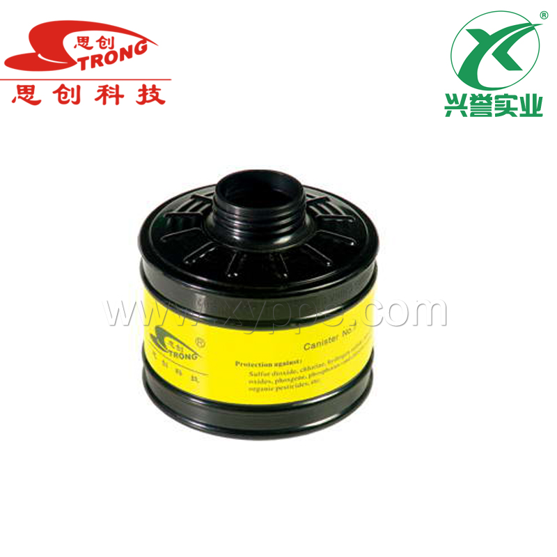7号滤毒罐(黄色)防护酸性气体:二氧化硫、氯气、硫化氢、氮的氧化物、光气、磷和含氧有机农药等