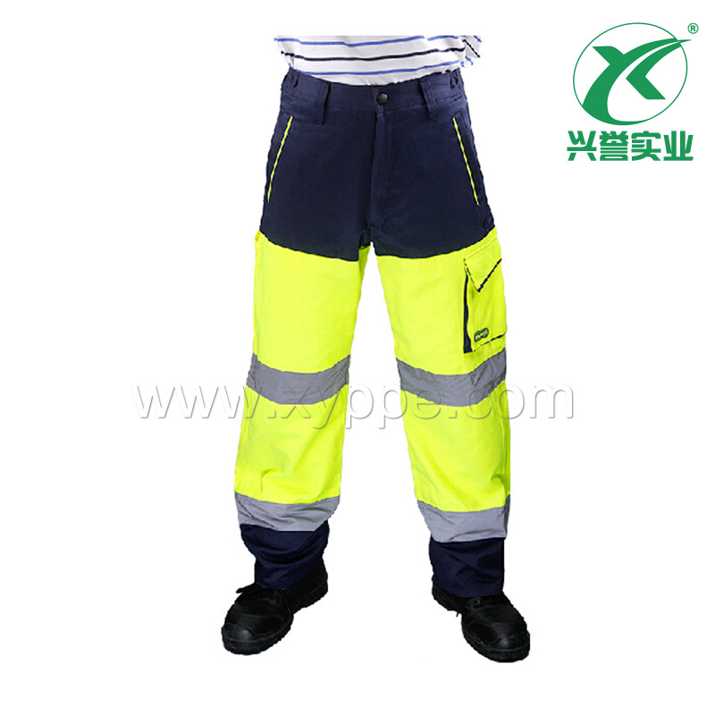 产品简介:荧光工装裤,54%棉46%涤,260克重,腰两侧松紧支撑,反光等级2级,适合多种天气室内外穿着。