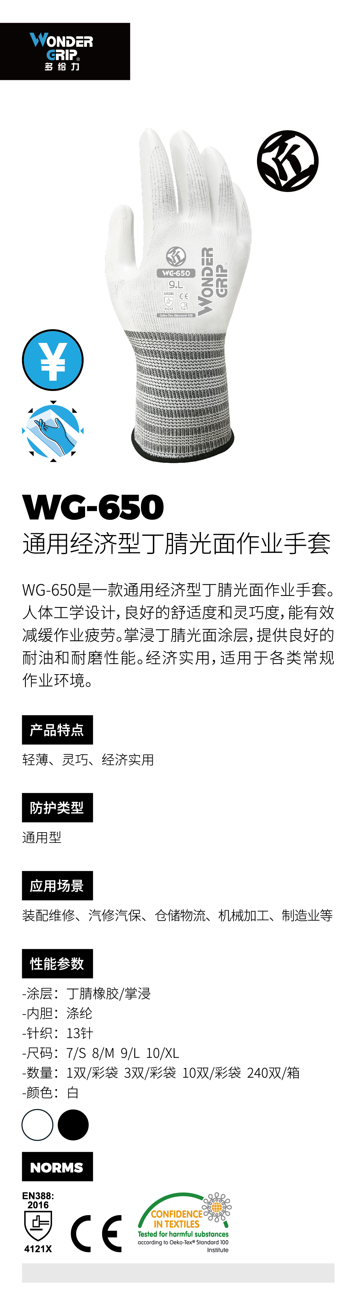 产品名称:多给力 WG-650 经济型丁腈光面作业手套