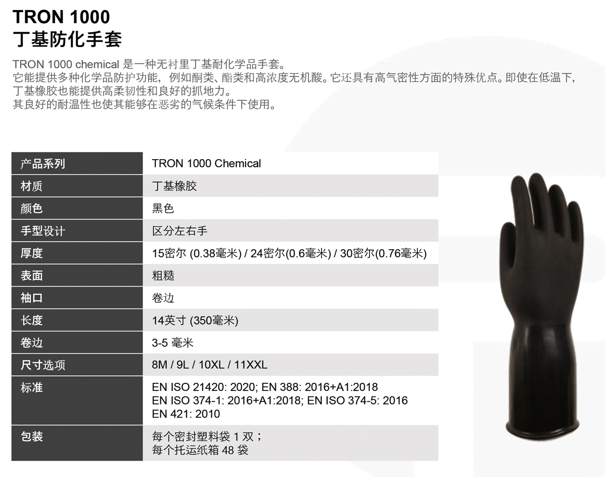 TRON 1000 chemical is an unsupported butyl chemical resistant glove.